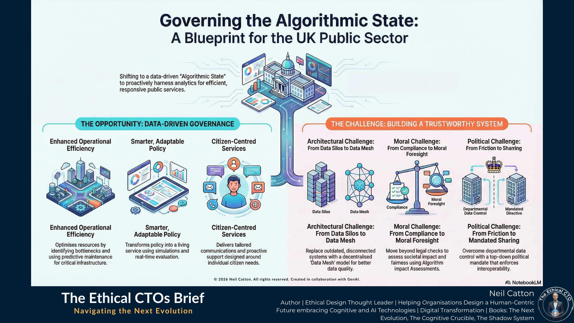 Data-driven insights are crucial for transforming the UK public sector. They enable more effective, efficient and fundamentally citizen-centred services. However, achieving a fully realised Algorithmic State faces significant structural, skills and moral challenges. The focus should shift from incremental digital improvements to systemic redesign. For the UK public sector to truly benefit, it must embrace: