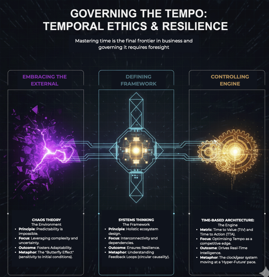 We stand on the brink of a significant temporal divide. On one side are institutions burdened by accumulated Temporal Debt, hindered by linear thinking and unable to adapt swiftly enough to remain relevant. Conversely, organisations that have mastered Time-Based Architecture – systems operating with a superior Systems Rhythm – achieve instantaneous insight and action.