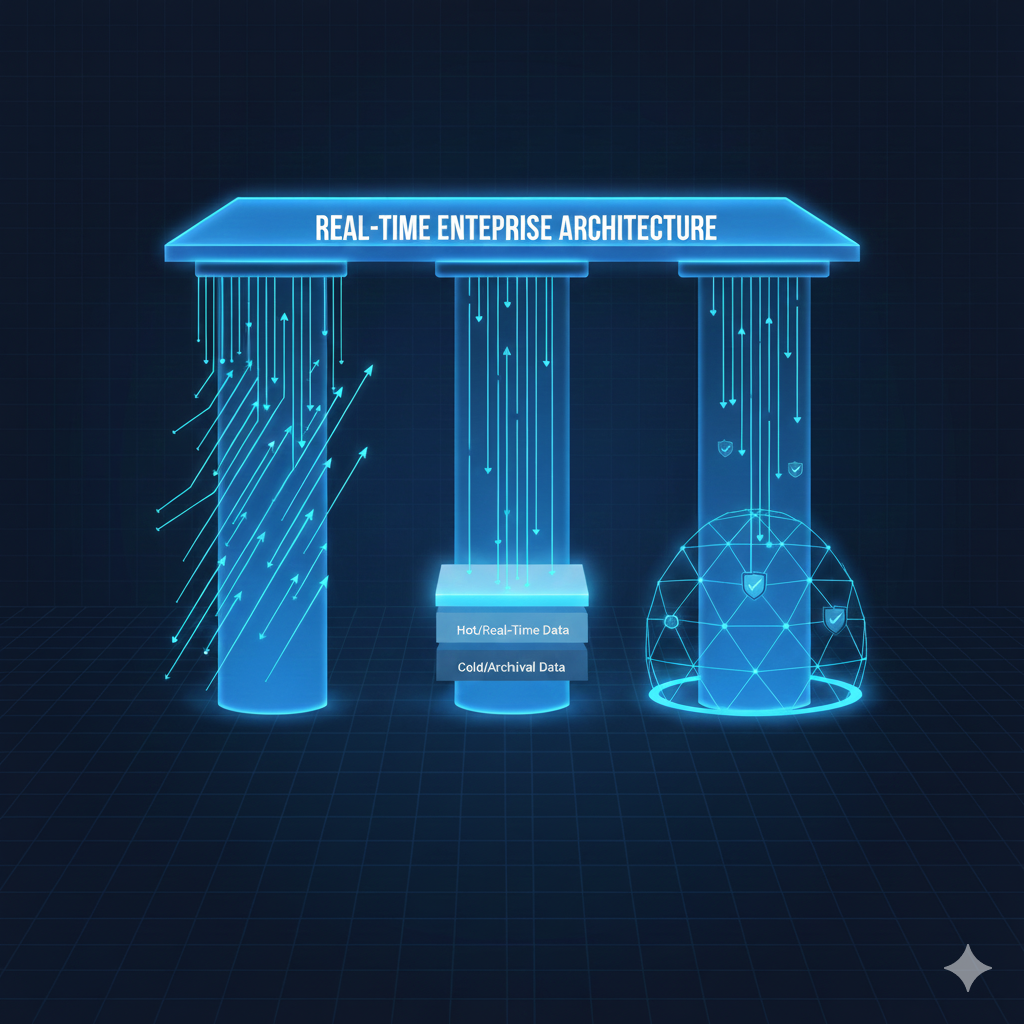 - Description: This pillar emphasises the importance of managing data “speeds” ranging from milliseconds to years. A robust Time-Based Architecture must incorporate Polyglot Persistence that is time-aware. This means using in-memory databases and stream processors for microsecond latency operations like high-frequency trading and cyber defence. Simultaneously, minute-level aggregation for risk monitoring (using time-series databases) and multi-year data archiving for compliance are essential. Ultimately, the goal is to provide an instant, accurate temporal view for every decision, preventing incorrect outcomes caused by using data at the wrong speed. This capability directly reduces the Time to Knowledge.