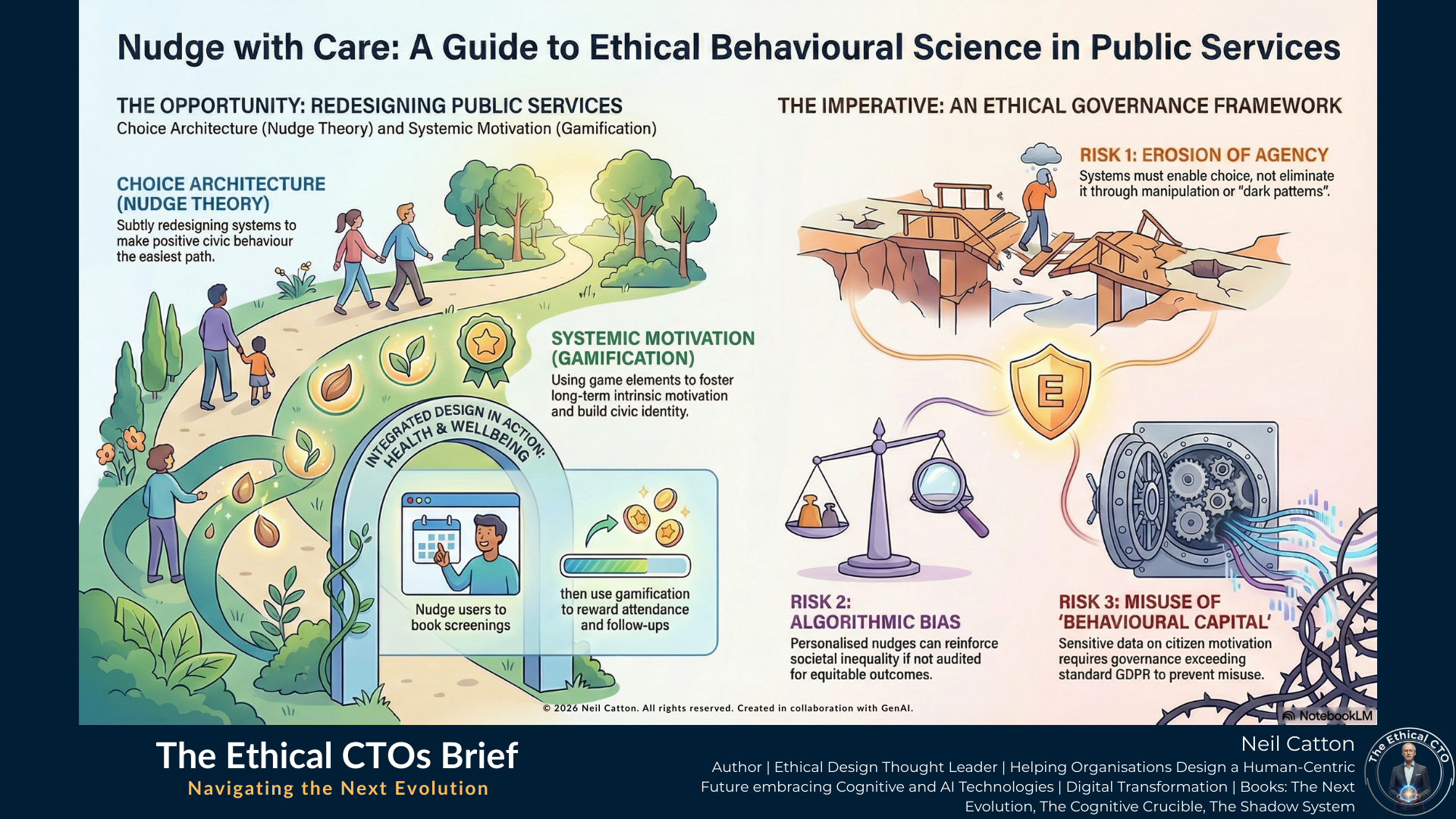 Transitioning from practical application to ethical management of behavioural tools demands a substantial shift in leadership mindset. When an organisation intentionally designs citizens’ choices, it assumes a ethical responsibility extending beyond mere legal compliance. This influence must be rigorously governed by moral foresight – anticipating and mitigating potential structural damage before it occurs. This strategic governance layer forms the intellectual core of the “Next Evolution” framework, ensuring innovation serves democracy rather than undermines it.